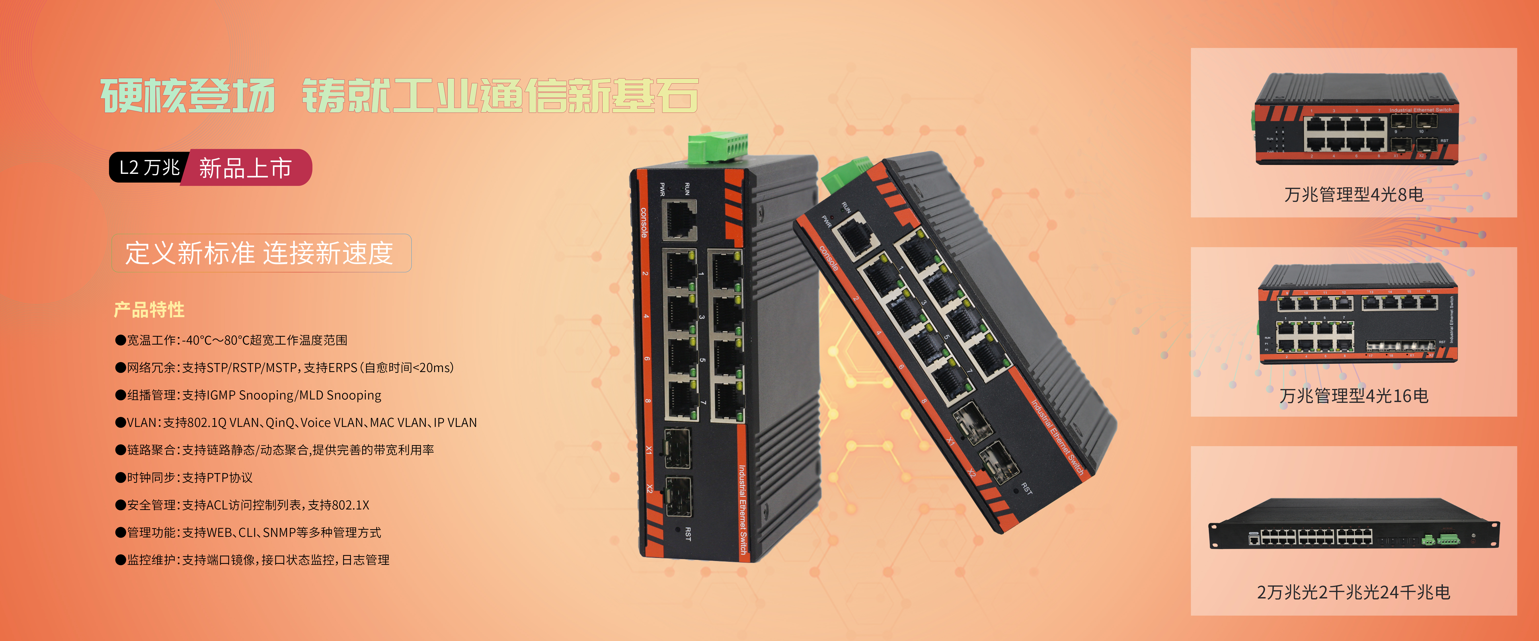 深圳市宇航光通科技有限公司總部位于深圳,是一家以工業以太網產品自主研發,生產,銷售和服務為主營業務的國家高新技術企業、深圳高新技術企業,為客戶提供高性價比的工業以太網產品和解決方案,在工業以太網產品領域獲得了多項創新型的技術成果,連續多年中國十大安防品牌,連續三年中國信創產業500強,中國信創產業獨角獸100強,中國信創產業領軍企業100強,工信部、公安部等智慧城市首推品牌,宇航光通專注于工業交換機品牌市場和中大型客戶OEM/ODM市場。產品包括工業級收發器、工業級交換機、二層工業級PoE交換機、二層非管理型工業級交換機、二層工業級管理型交換機、三層工業級萬兆交換機等。宇航光通致力于打破工業交換機西方巨頭的技術壟斷,致力于工業交換機市場化、平民化。