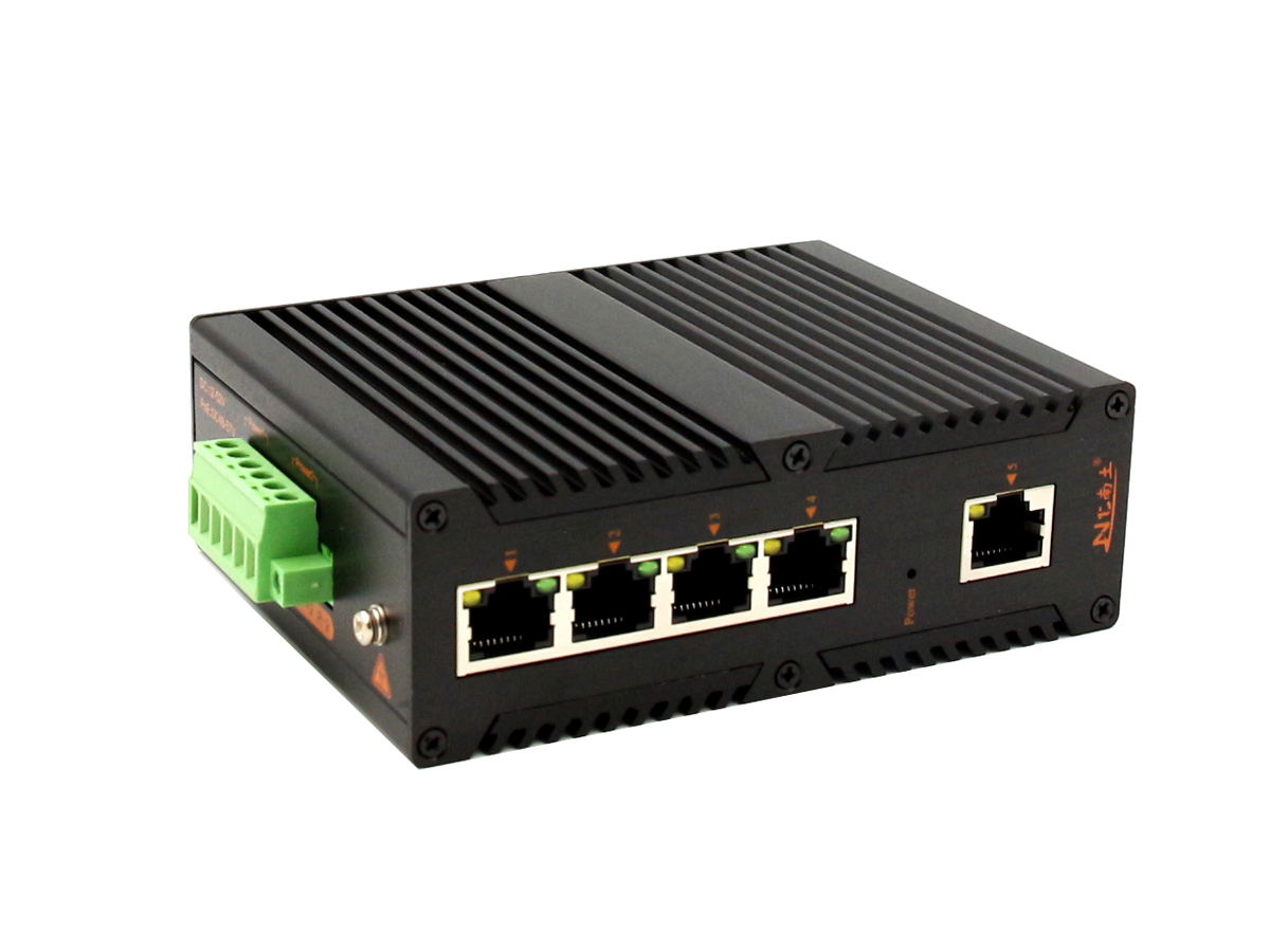 工業級(NT品牌)百兆非網管5電,導軌式-DC12~52V供電-寬溫(-40℃-85℃)。默認不含AC電源適配器。 |
