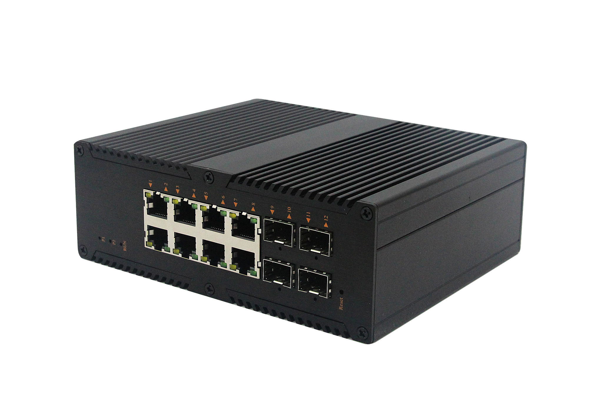 4個千兆光+8個千兆自適應電口、SFP接口、DC12-52V供電 |