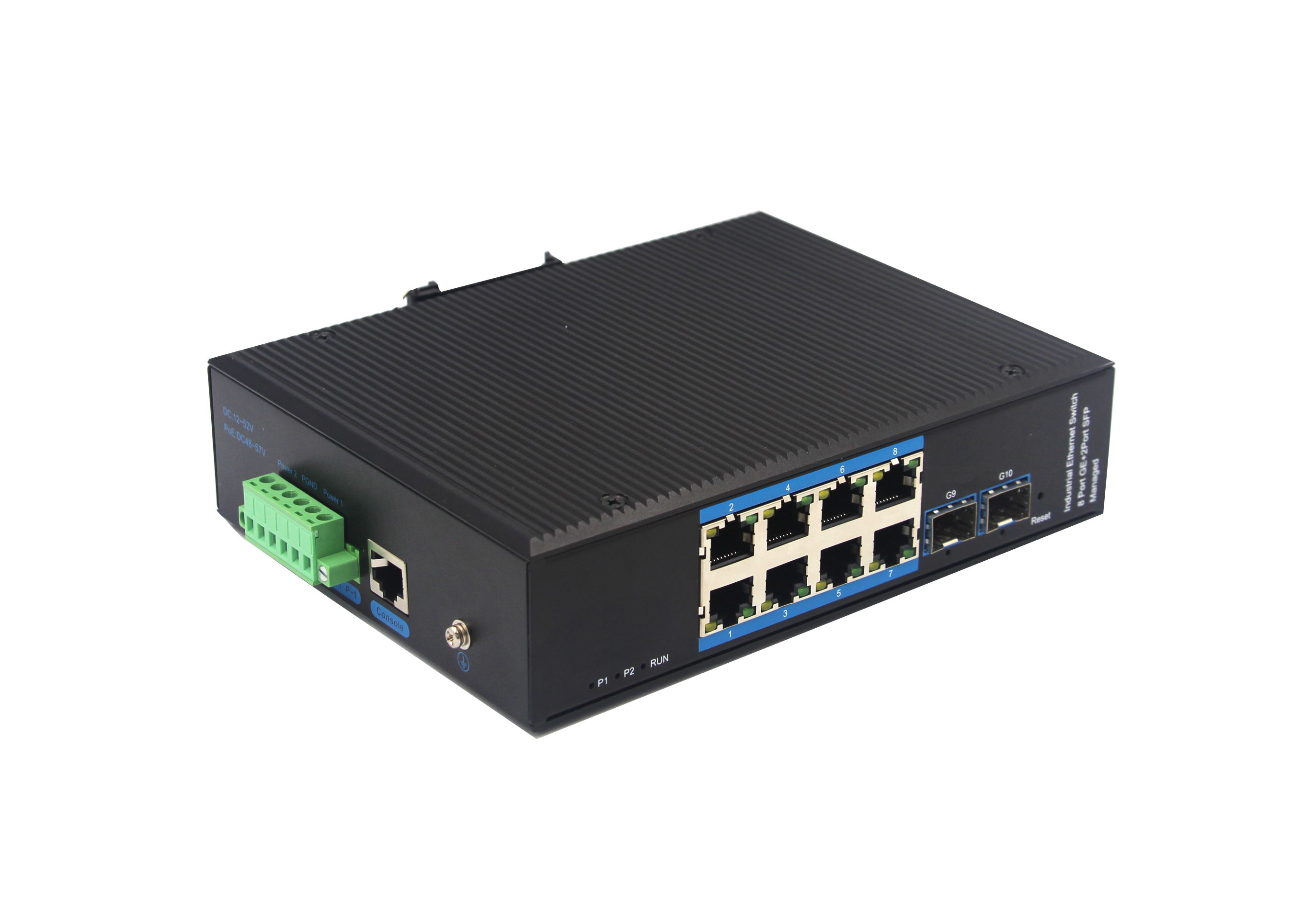 2個千兆光+8個千兆自適應電口、SFP接口、DC12-52V供電 |