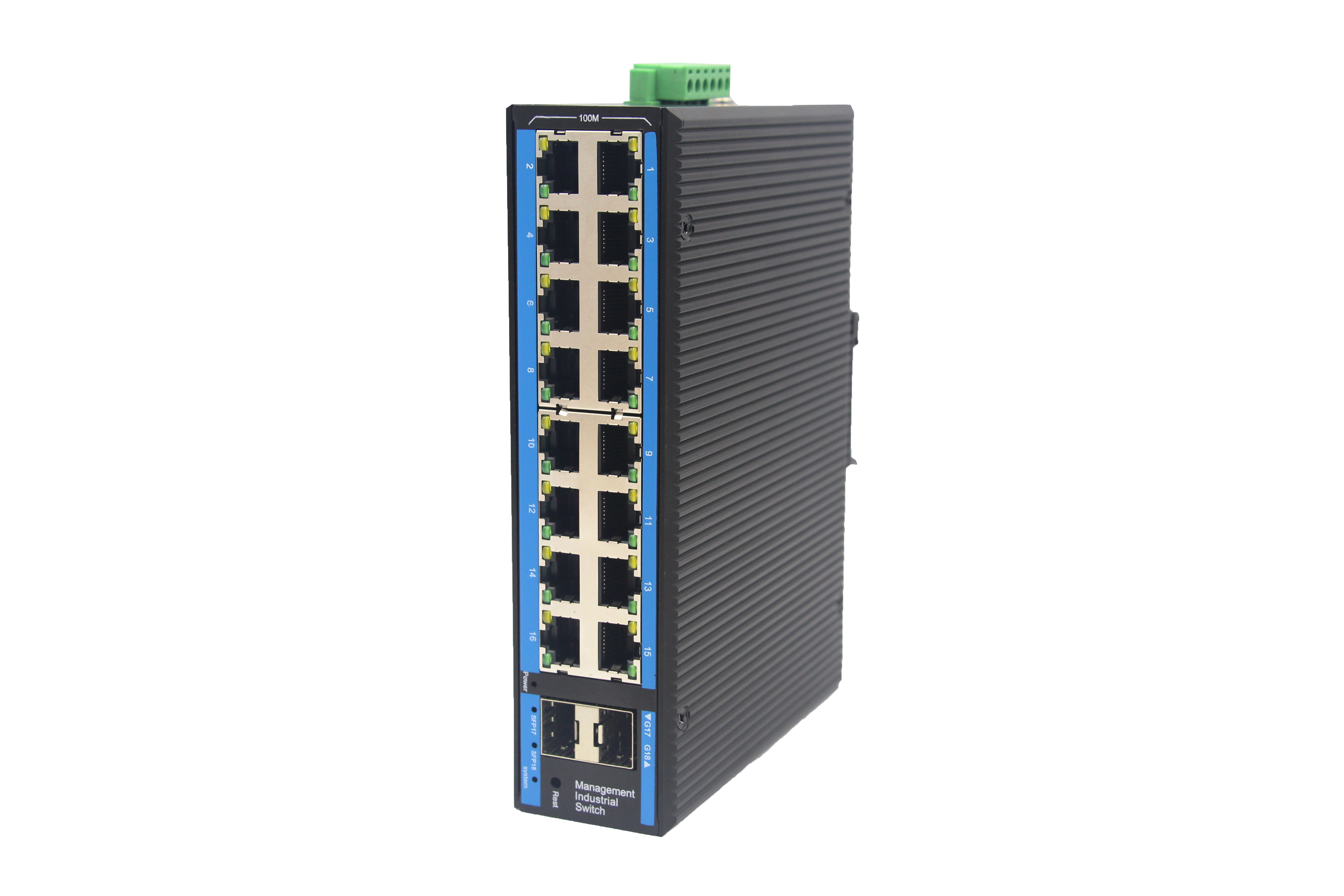 YH6216GFS系列網(wǎng)管型工業(yè)以太網(wǎng)交換機,產(chǎn)品符合FCC、CE、ROHS標(biāo)準(zhǔn)。支持2個千兆光口和16個百兆電口,支持工業(yè)現(xiàn)場所需的以太網(wǎng)二層協(xié)議,保證通信網(wǎng)絡(luò)的穩(wěn)定性;該系列交換機采用低功耗、無風(fēng)扇設(shè)計,確保無噪聲干擾,同時支持-40~85℃工作溫度和良好的EMC電磁兼容性能,保證在惡劣的工業(yè)環(huán)境中保持穩(wěn)定的工作,為工廠自動化,智能交通,視頻監(jiān)控等工業(yè)應(yīng)用領(lǐng)域組建快速穩(wěn)定的網(wǎng)絡(luò)終端接入網(wǎng)絡(luò)提供安全可靠的解決方案。
