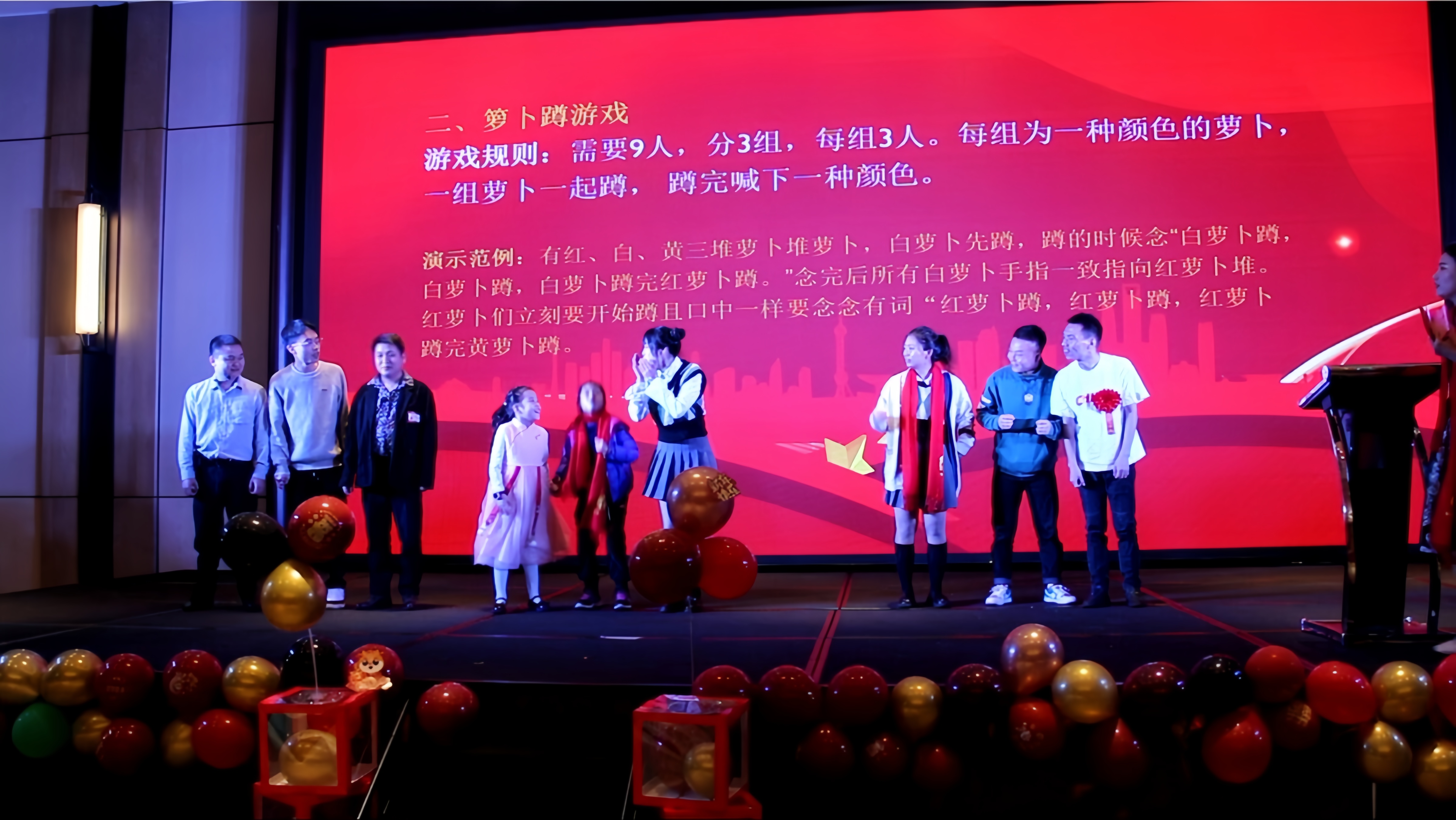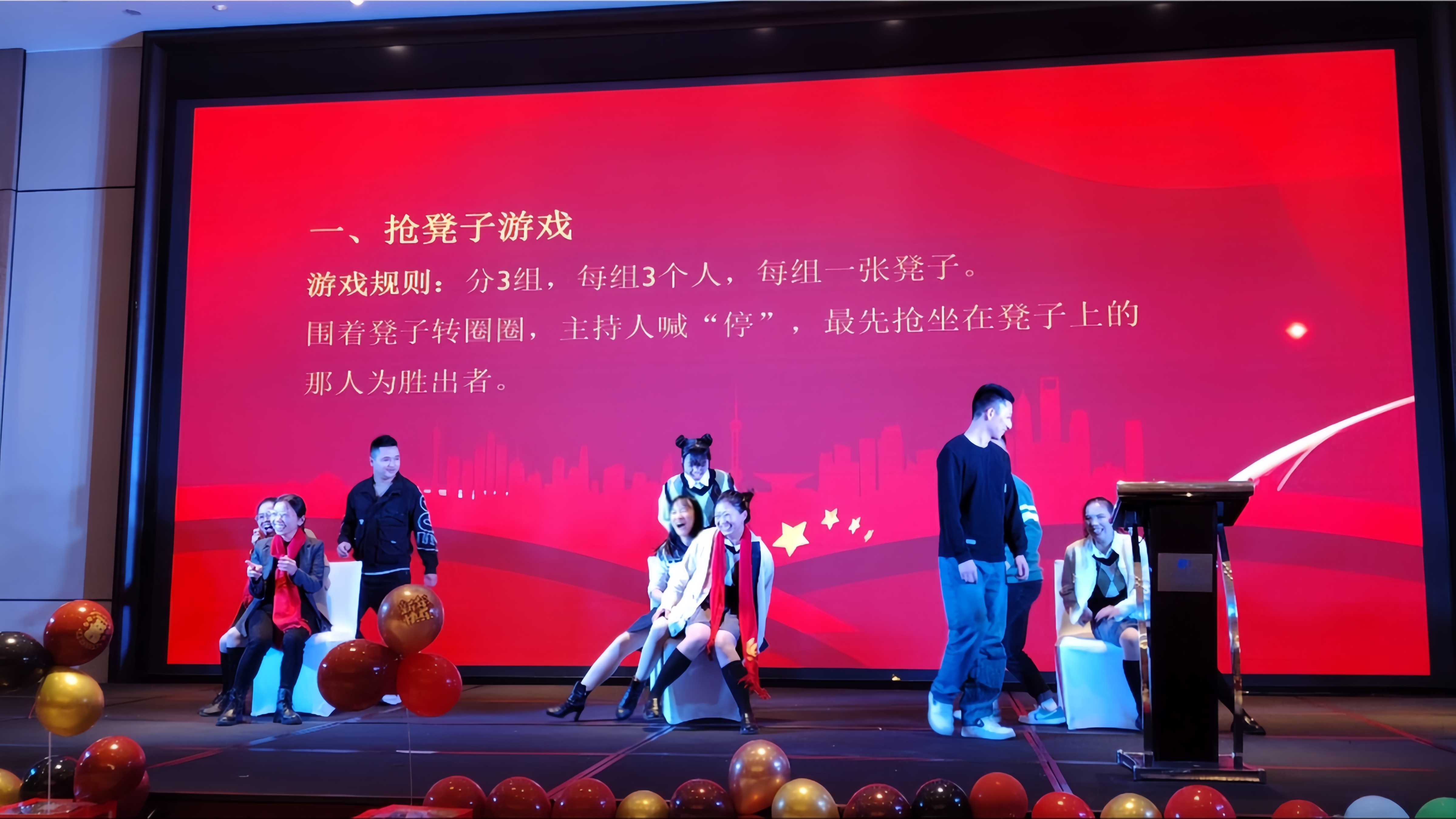 在年會(huì)的歡樂氛圍中,還有兩個(gè)充滿趣味性的游戲——搶凳子和蘿卜蹲。隨著歡快的音樂聲響起,搶凳子游戲正式開始,參與者們圍繞著凳子轉(zhuǎn)圈,眼睛緊盯著凳子,耳朵聆聽著主持的口令,當(dāng)音樂突然停止時(shí),他們需要迅速找到一個(gè)凳子坐下。一時(shí)間,現(xiàn)場(chǎng)充滿了歡笑聲和緊張的氣氛。緊接著是充滿趣味性的蘿卜蹲游戲,參與者們展現(xiàn)出活力的身姿。他們根據(jù)指定的口號(hào),一蹦一跳地輪流蹲下起立,仿佛一群活潑的蘿卜在舞動(dòng)。在這個(gè)游戲中,不僅鍛煉了身體協(xié)調(diào)能力,還考驗(yàn)著團(tuán)隊(duì)之間的默契。