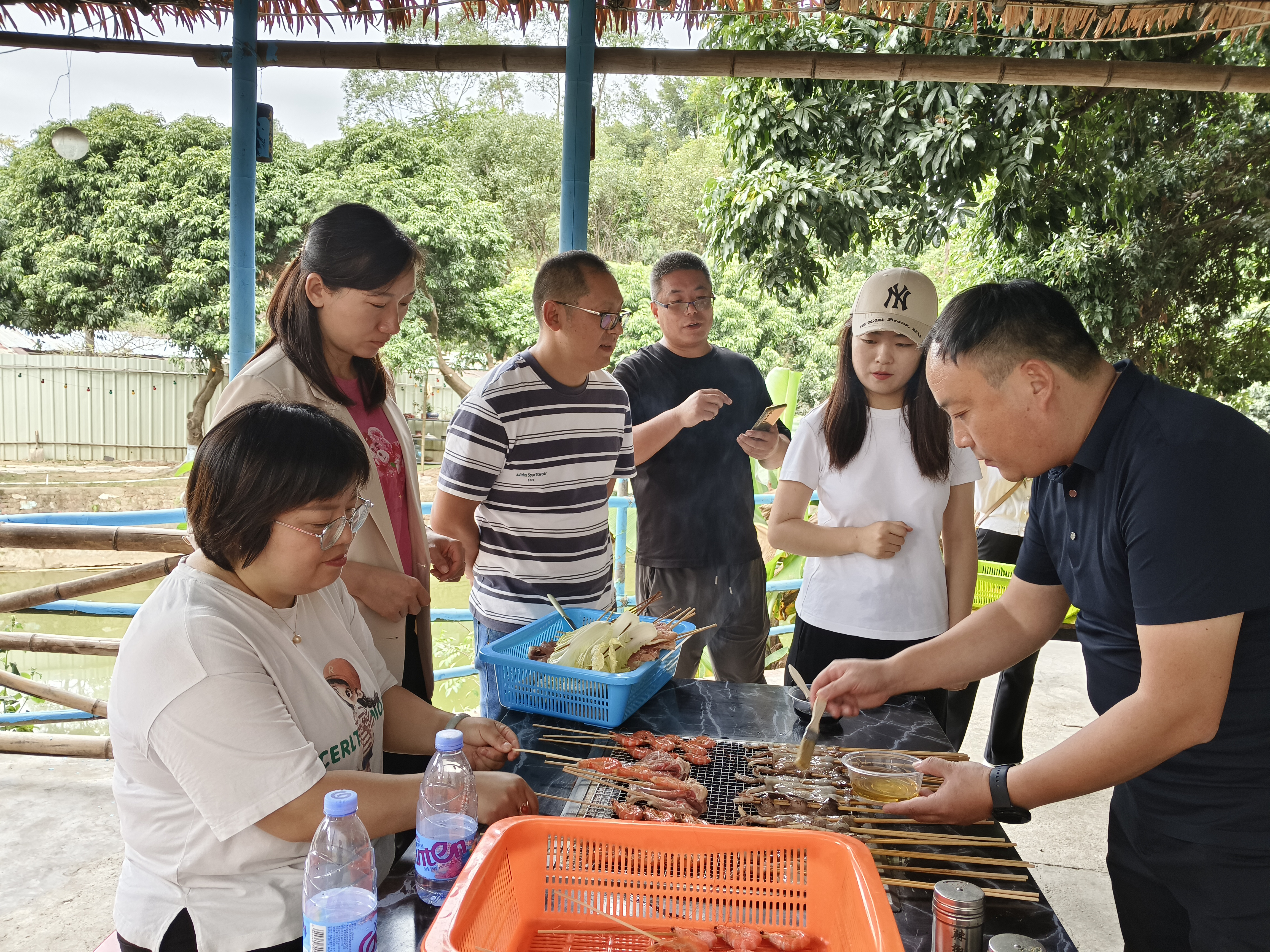 中午時分,大家到達了預定的燒烤地點,火紅的炭火和新鮮食材早已備好。各小組成員分工明確,有的負責洗菜,有的負責串串,有的負責燒烤,大家齊心協力,很快就烤出了香氣四溢的美味佳肴。大家圍坐在燒烤架旁,品嘗著自己的勞動成果,分享美食,歡聲笑語不絕于耳。