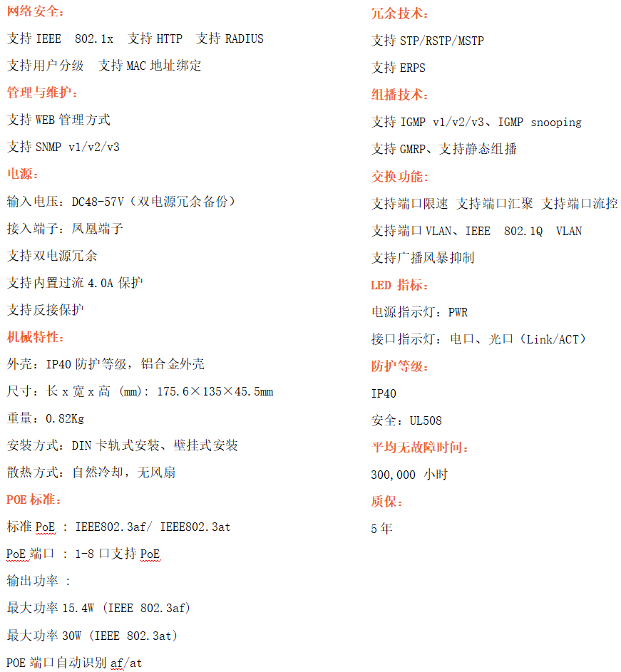 ●告警功能:支持電源,端口,異常狀態(tài)繼電器輸出IP40防護(hù)等級