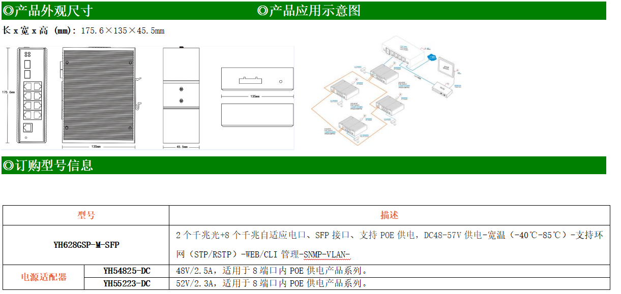 YH600-28GSP-M-SFP是網(wǎng)管型POE工業(yè)以太網(wǎng)交換機,產(chǎn)品符合FCC、CE、RoHS標(biāo)準(zhǔn)。支持2個千兆光口和8個千兆poe電口;支持工業(yè)現(xiàn)場所需的以太網(wǎng)二層協(xié)議,保證通信網(wǎng)絡(luò)的穩(wěn)定性;該系列交換機采用低功耗、無風(fēng)扇設(shè)計,確保無噪聲干擾,同時支持-40~85℃工作溫度和良好的EMC電磁兼容性能,保證在惡劣的工業(yè)環(huán)境中保持穩(wěn)定的工作,為工廠自動化,智能交通,視頻監(jiān)控等工業(yè)應(yīng)用領(lǐng)域組建快速穩(wěn)定的網(wǎng)絡(luò)終端接入網(wǎng)絡(luò)提供安全可靠的解決方案。