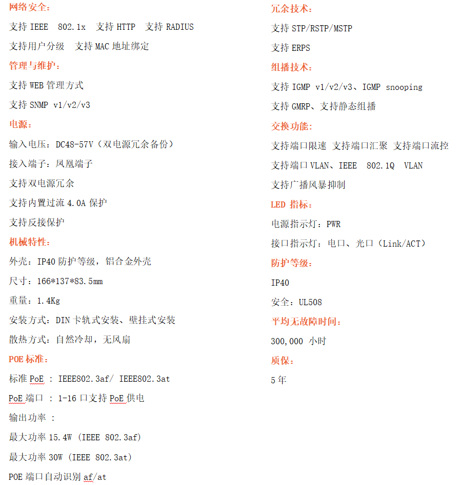 ●管理功能:支持WEB、SNMP管理方式