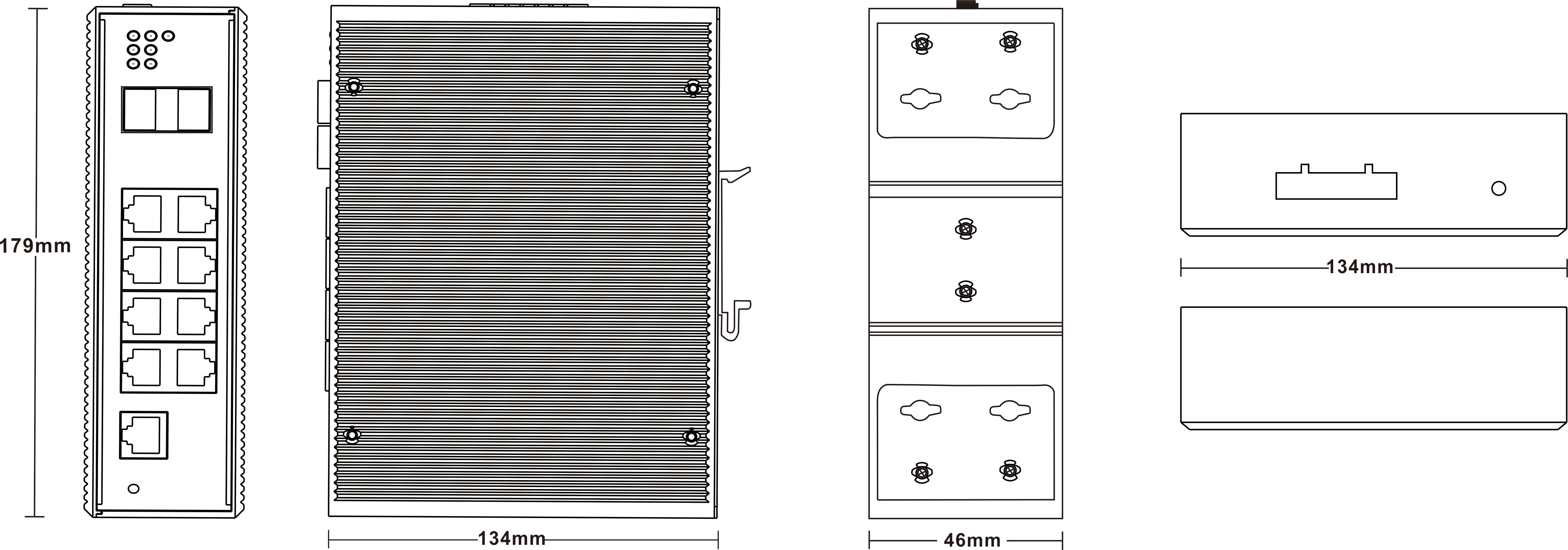 外殼:金屬材質(zhì) 安裝:DIN 卡軌式,壁掛式安裝 重量:0.65Kg 尺寸 :148x 107x 53.5mm (長 x 寬 x 高) |