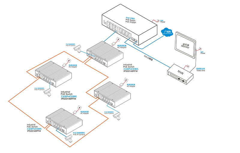 電源指示燈:PWR 接口指示燈:電口、光口(Link/ACT) |