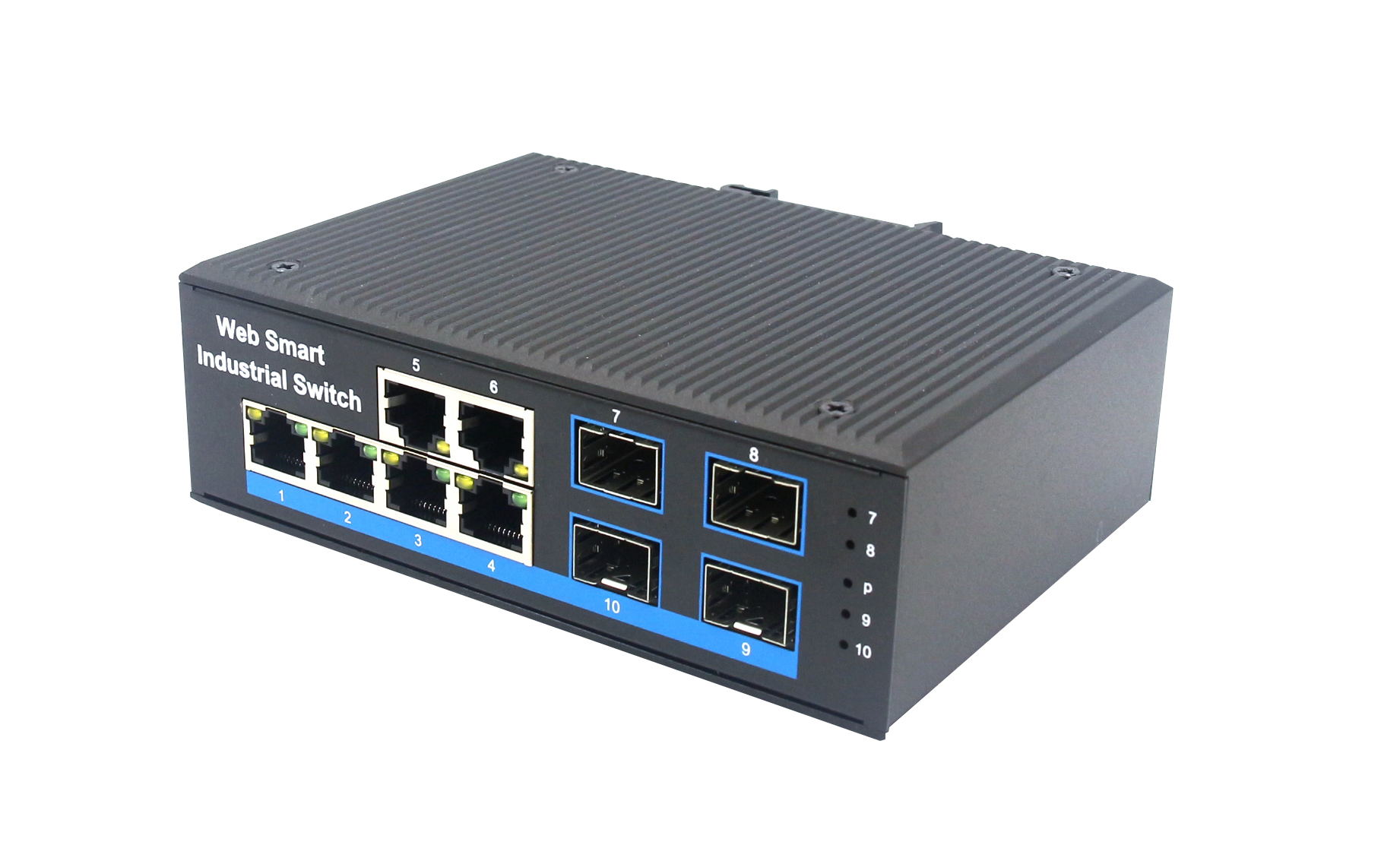 4個千兆光+6個千兆電、SFP接口(不含光模塊)、導軌式、DC12-52V供電-寬溫(-40℃-85℃)-支持環網(ERPS)-WEB管理
