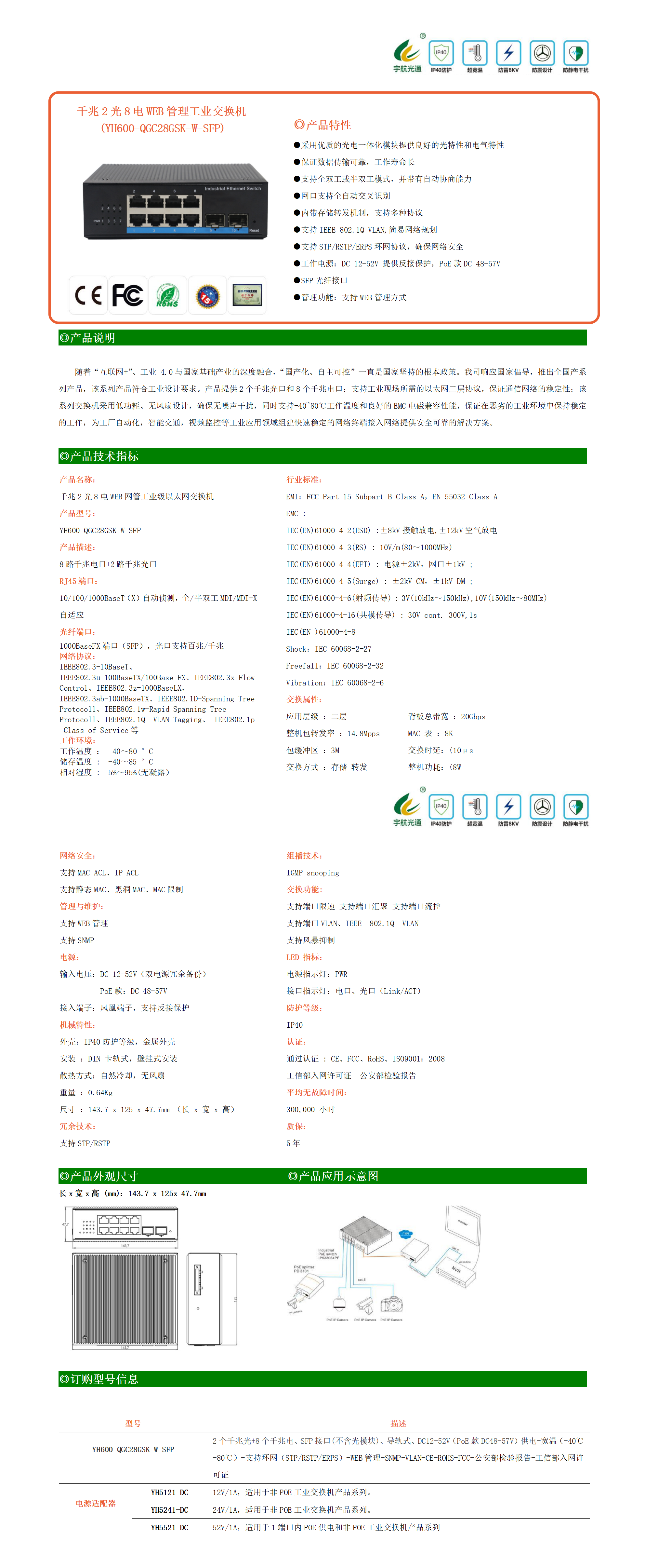 隨著“互聯網+”、工業 4.0與國家基礎產業的深度融合,“國產化、自主可控”一直是國家堅持的根本政策。我司響應國家倡導,推出全國產系列產品,該系列產品符合工業設計要求。產品提供2個千兆光口和8個千兆電口;支持工業現場所需的以太網二層協議,保證通信網絡的穩定性;該系列交換機采用低功耗、無風扇設計,確保無噪聲干擾,同時支持-40~80℃工作溫度和良好的EMC電磁兼容性能,保證在惡劣的工業環境中保持穩定的工作,為工廠自動化,智能交通,視頻監控等工業應用領域組建快速穩定的網絡終端接入網絡提供安全可靠的解決方案。