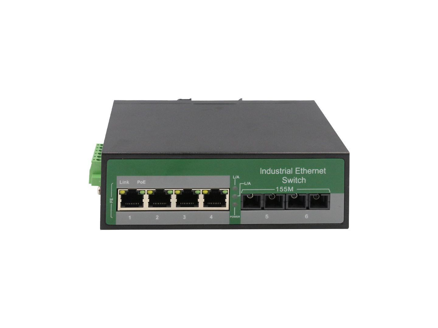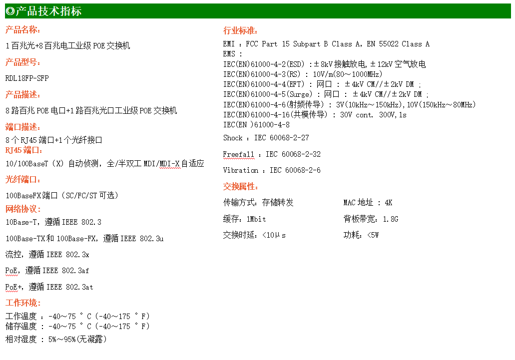 4路百兆POE電口+2路百兆FX光口工業級以太網交換機,支持4個10Base-T/100Base-TX電口和2個100Base-X光口。產品符合FCC、CE、ROHS標準。RDL24FP系列交換機具有-40℃~75℃的工作溫度,具有超強的堅固度能適應各種嚴苛環境,也可以非常方便的安置在空間緊湊的控制箱中。導軌的安裝特性、寬溫操作及擁有IP40防護等級的外殼及LED指示燈,使RDL24FP成為一個即插即用的工業級設備,為用戶的以太網設備聯網提供可靠、便捷的解決方案。