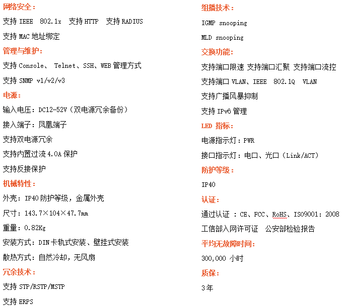 ●支持STP/RSTP/ERPS,SNMPv1/v2/v3,確保網絡安全
