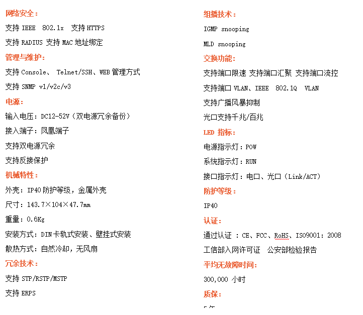 ●支持STP/RSTP/ERPS,SNMPv1/v2/v3,確保網絡安全