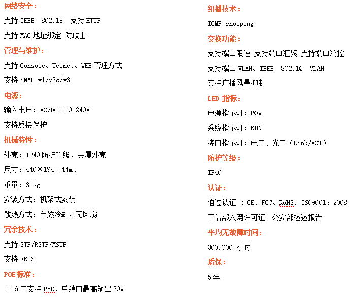 ●管理功能:支持WEB、CLI、SNMP管理方式