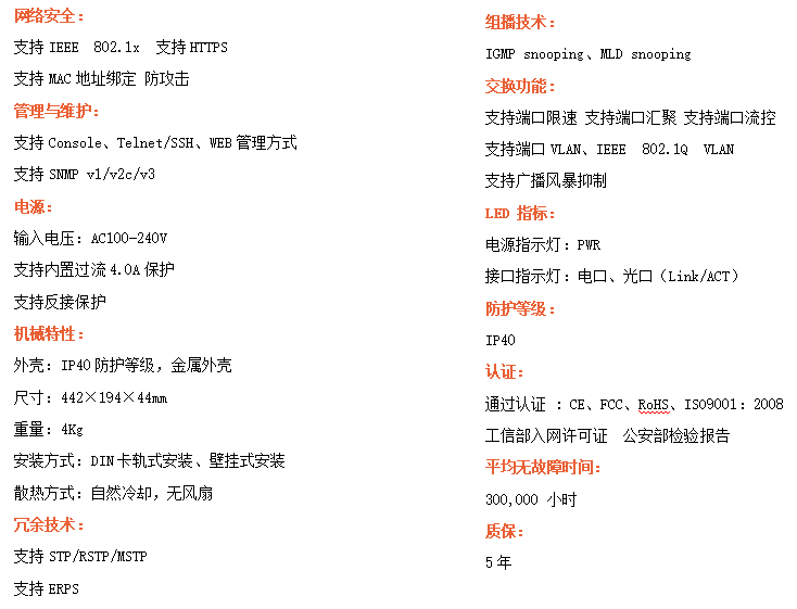 ●支持STP/RSTP/MSTP/ERPS,SNMPv1/v2c/v3,確保網(wǎng)絡(luò)安全