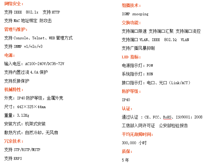 ●支持STP/RSTP/MSTP/ERPS,SNMPv1/v2c/v3,確保網(wǎng)絡(luò)安全