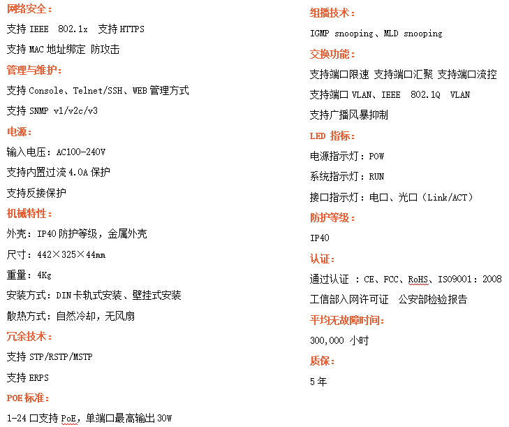 ●管理功能:支持WEB、CLI、SNMP管理方式