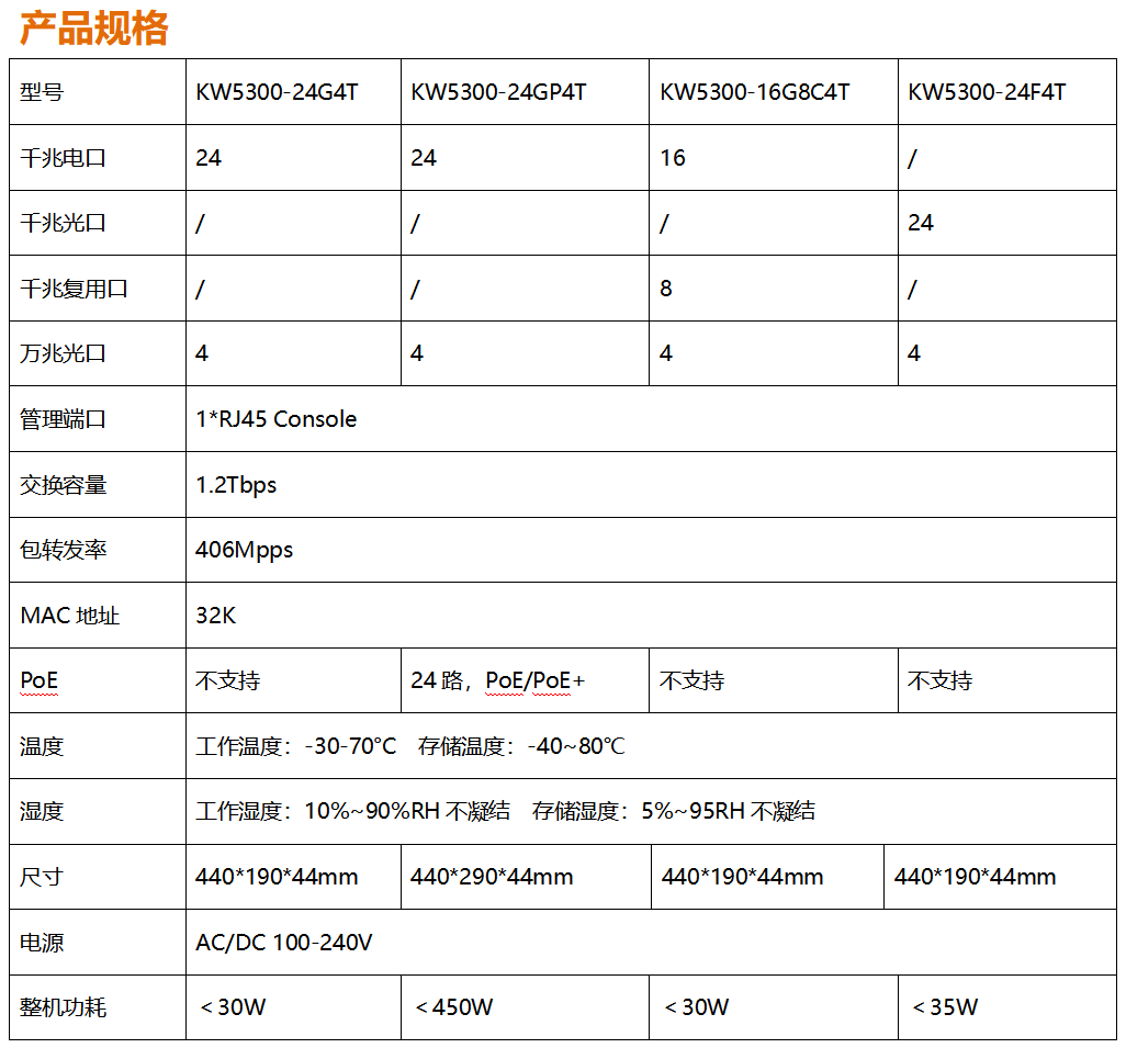 全新開發(fā)推出的KW5300系列全千兆網(wǎng)管寬溫交換機,采用新一代高性能硬件和軟件平臺,提供靈活、高性價比的全千兆接入和上行端口,支持完備的安全防護(hù)機制、完善的ACL/QoS策略和靈活的VLAN功能,易于管理維護(hù),滿足用戶對于網(wǎng)絡(luò)設(shè)備易管理、高安全、高性能、低成本的組網(wǎng)需求,專為市政、銀行、教育、醫(yī)院、酒店、網(wǎng)吧、數(shù)據(jù)中心等室內(nèi)項目以及戶外新基建項目定制系列,能滿足大規(guī)模的市場需求。