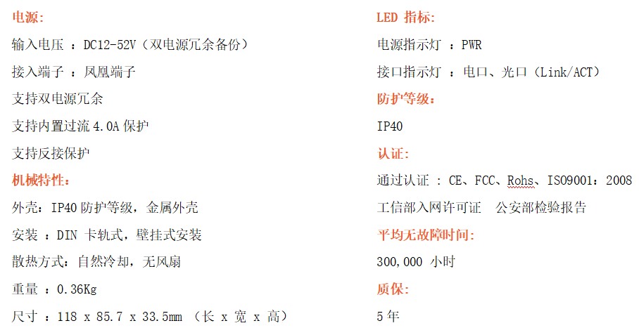 1路千兆電口+1路千兆FX光口工業(yè)級以太網(wǎng)交換機(jī),支持1個(gè)10Base-T/100Base-T/1000Base-TX電口和1個(gè)1000Base-X光口。產(chǎn)品符合FCC、CE、ROHS標(biāo)準(zhǔn)。RD11G系列交換機(jī)具有-40℃~80℃的工作溫度,具有超強(qiáng)的堅(jiān)固度能適應(yīng)各種嚴(yán)苛環(huán)境,也可以非常方便的安置在空間緊湊的控制箱中。導(dǎo)軌的安裝特性、寬溫操作及擁有IP40防護(hù)等級的外殼及LED指示燈,使RD11G成為一個(gè)即插即用的工業(yè)級設(shè)備,為用戶的以太網(wǎng)設(shè)備聯(lián)網(wǎng)提供可靠、便捷的解決方案。